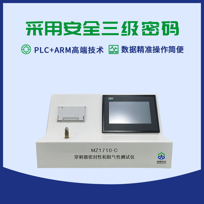 MZ1710-C穿刺器密封性和阻氣性測試儀采用PLC+ARM可編程控制器,觸摸屏,中英文菜單顯示,壓力傳感器,加壓裝置,機載打印機等組成。