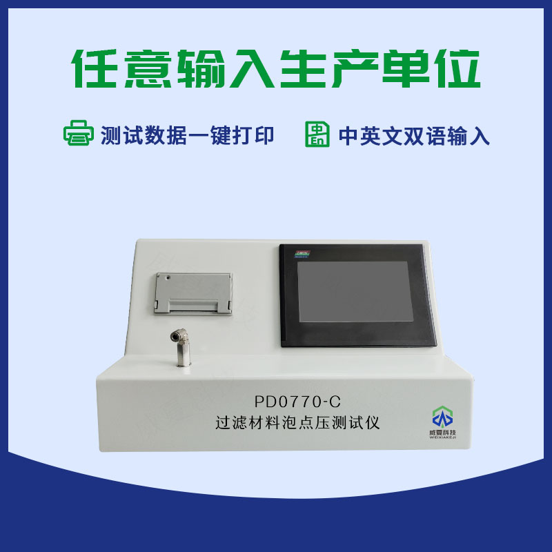 PD0770-C過(guò)濾材料泡點(diǎn)壓測(cè)試儀是國(guó)家檢驗(yàn)生產(chǎn)廠家產(chǎn)品性能的高效檢測(cè)設(shè)備,主要用于測(cè)定過(guò)濾材料泡點(diǎn)壓的物理特性,是鑒定過(guò)濾材料泡點(diǎn)壓物理性能的重要手段之一。