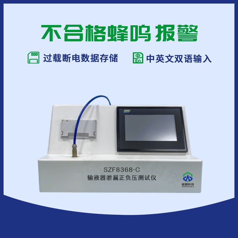 威夏科技 SZF8368-C 輸液器泄漏正負(fù)壓測試儀是檢驗(yàn)生產(chǎn)廠家產(chǎn)品性能的檢測設(shè)備。SZF8368-C 輸液器漏泄正負(fù)壓測試儀適用于輸液器、輸血器、輸液針、麻醉包過濾器、管路、導(dǎo)管、快速接頭等測試,主要用于測定醫(yī)用輸液器的物理特性,是鑒定輸液器正負(fù)壓物理性能的重要手段之一。測試操控范圍包括:產(chǎn)品規(guī)格、測試壓力值設(shè)定、保持時(shí)間設(shè)定,打印設(shè)定、測試、加壓、減壓、時(shí)間、標(biāo)定,檢定等等功能設(shè)定。
